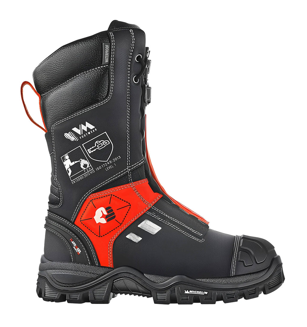 Zaščitni čevlji za gasilce in intervencijske enote, iz polnozrnatega usnja, vodoodporna podloga, PROTIVREZNI tehnični podplati Michelin®
