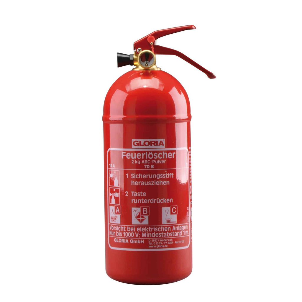 Gasilni aparat na prah GLORIA. Gasilnik vsebuje 2kg prahu gasilne vrednosti 13A 89B C, je pod stalnim tlakom zato je opremljen z zunanjim manometrom. Primeren za gašenje A, B, C požarnih razredov.