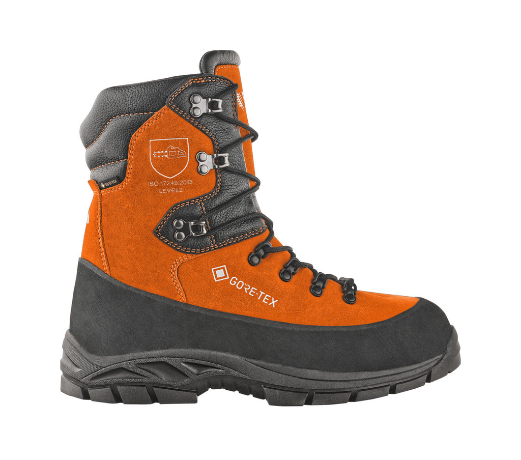 ZAŠČITA PRED MOTORNO ŽAGO - POLNO ZRNATO USNJE, MEMBRANA GORE-TEX®, ZAŠČITA PROTI UREZOM STOPNJA 2